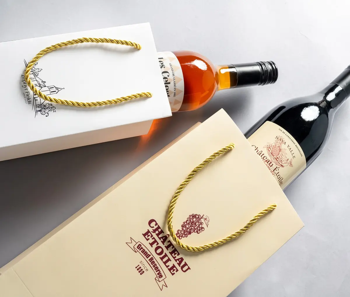 Available in both single and double bottle designs, these bags cater to different packaging needs, making them ideal for wineries, retailers, and gifting.