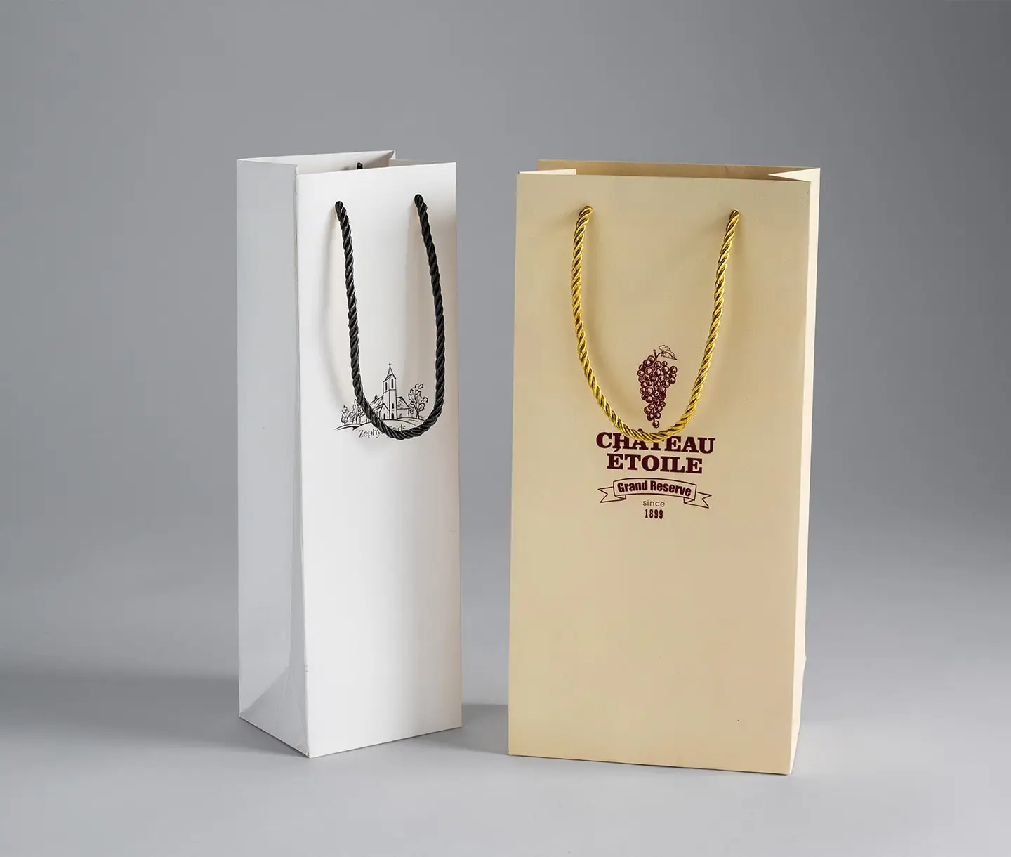 Featuring a reinforced rope or paper handle, these bags offer strong weight support and comfortable portability.