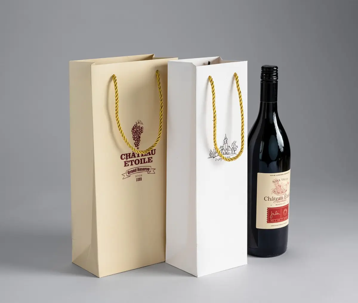 Available in both single and double bottle designs, these bags cater to different packaging needs, making them ideal for wineries, retailers, and gifting.