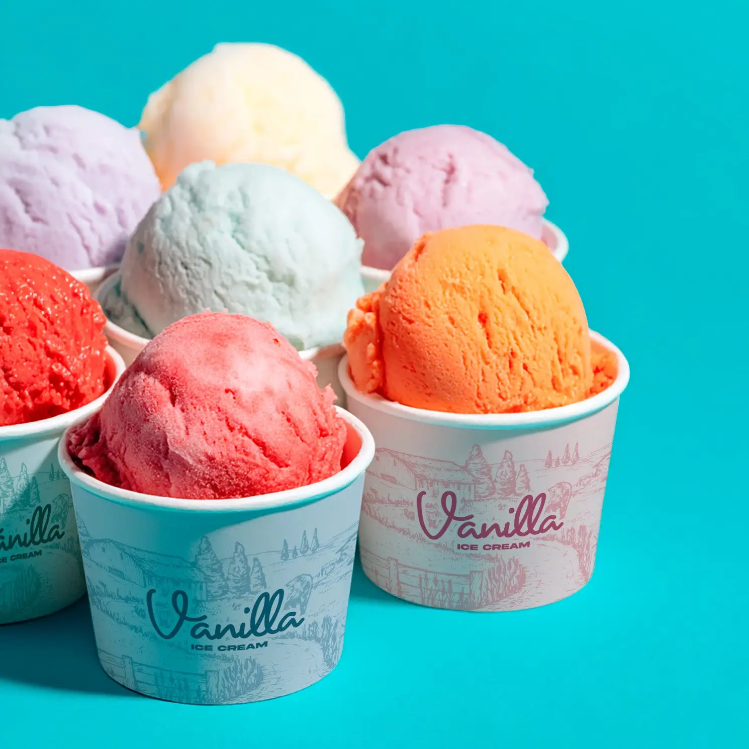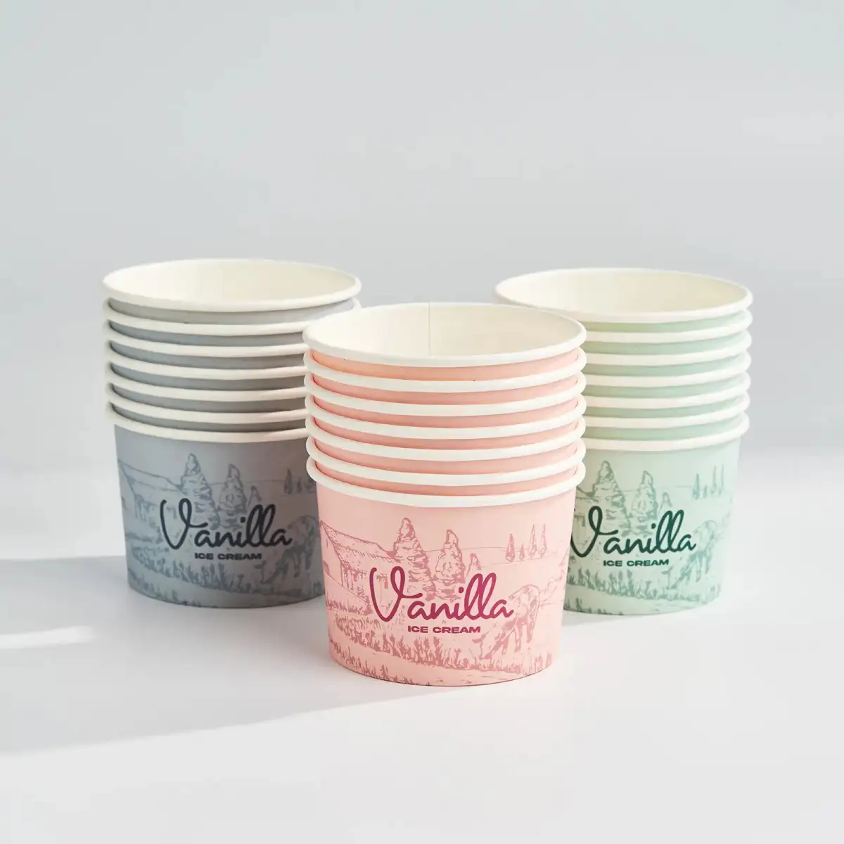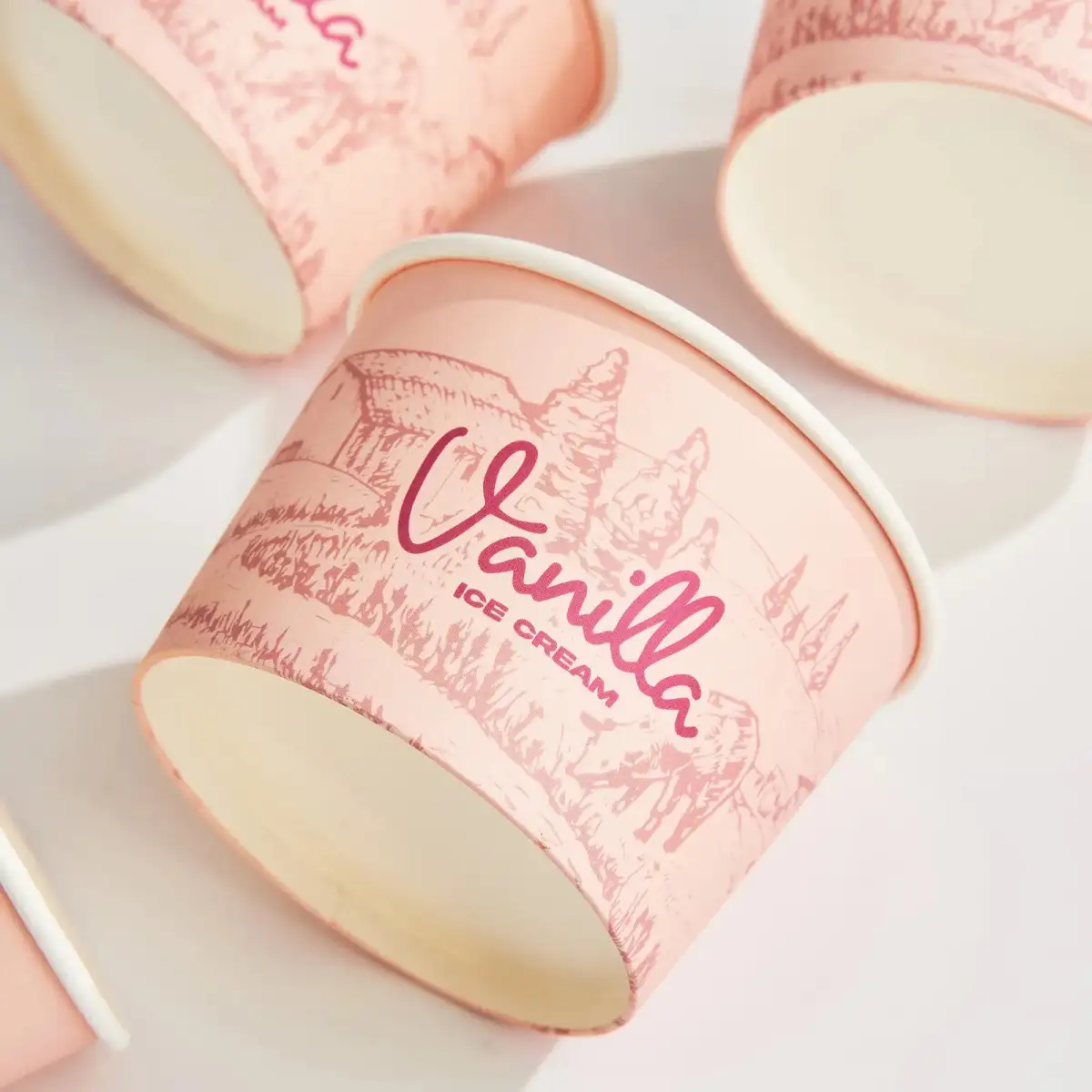 Serve up sweet treats in custom ice cream cups as vibrant as your brand. Our full wrap printed cups make from sturdy 230g white cardstock with food-grade coating for excellent grease and moisture resistance. Perfect for ice cream shops, dessert cafes, and event promotions. Low minimums starting at just 2,000 cups, with free professional design support to bring your brand to life.