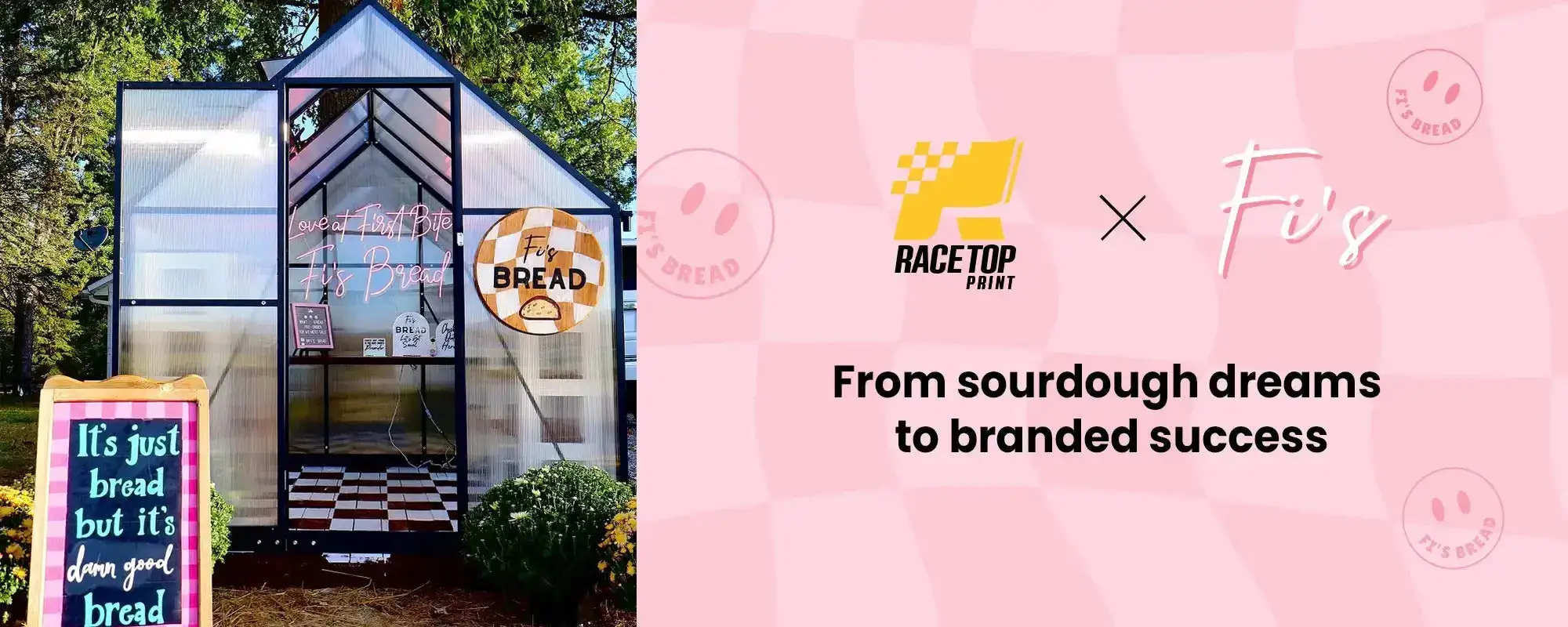 If you’re a small business owner with big dreams, RacetopPrint’s SBM program is here to help. Qualify, fill out our simple application, and receive a suite of custom print products in exchange for sharing photos and videos. Your story could be featured here—just like Fi’s Bread!