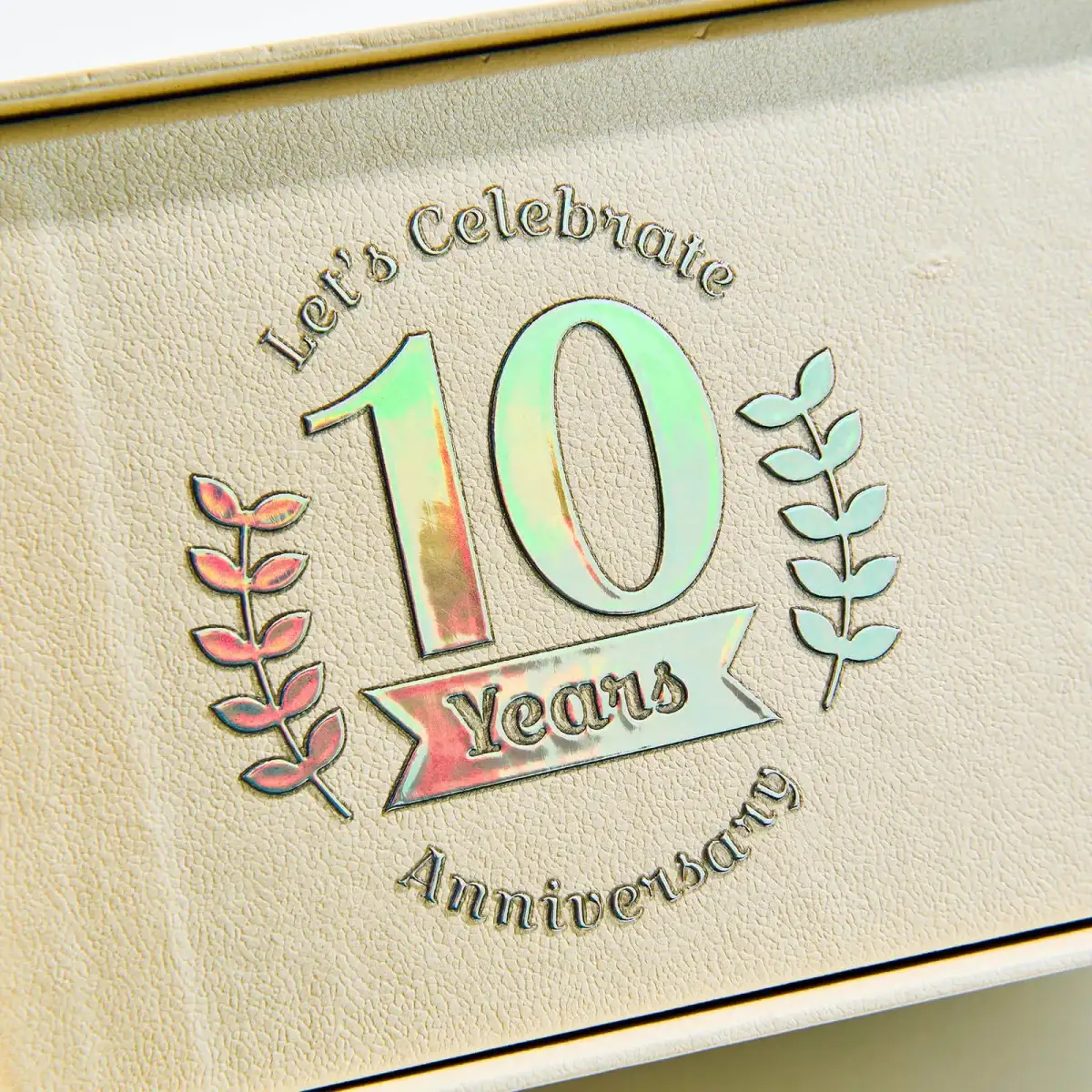 Holographic silver with polished crystal surface creates a 3D embossed effect with clean, background-free design.